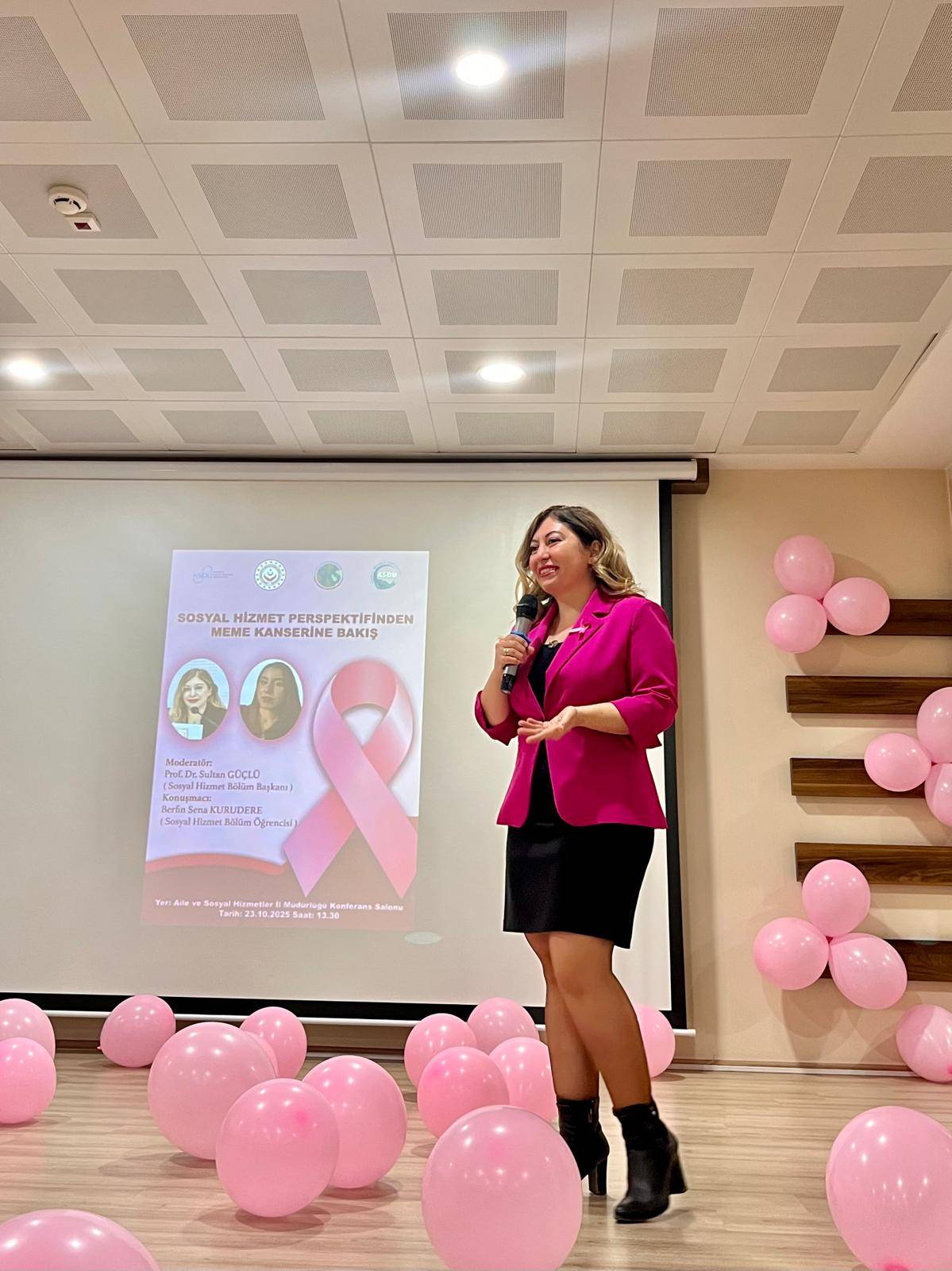 Katılımcılar tarafından büyük ilgi gören etkinlikte, meme kanserine sosyal hizmet bakış açısıyla yaklaşımın önemi üzerinde duruldu.